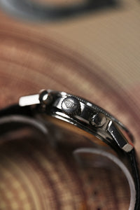 Inside beats the legendary Valjoux 72—one of the finest manual-wind chronograph movements of its time. Freshly serviced, it’s running superbly at +7 s/d, 295 amps, with a beat error of 0.2 ms.