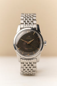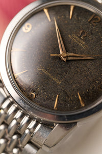 Some watches have stories baked into them, and this Omega is one of those pieces. At its core, it’s a classic 1950s dress watch balanced, understated, and powered by Omega’s first full rotor automatic movements. But what makes this one truly special is the way time and history have left their mark.