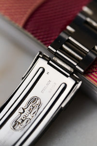 Now 42 years old, this watch remains in fantastic condition. The dial is spotless, with all tritium lume intact and aged to an even, creamy hue. The case has been polished in the past but sympathetically, with lugs and crown guards still strong and full. Its flat-four bezel insert with tritium pip is correct for the period and retains all of its colour. The watch also retains its original full-link 93150 bracelet with H-stamped clasp, showing only minimal stretch. Notably, the caseback is stamped 5512—a common occurrence after the 5512 was discontinued, when Rolex used the remaining identical casebacks for 5513 production.